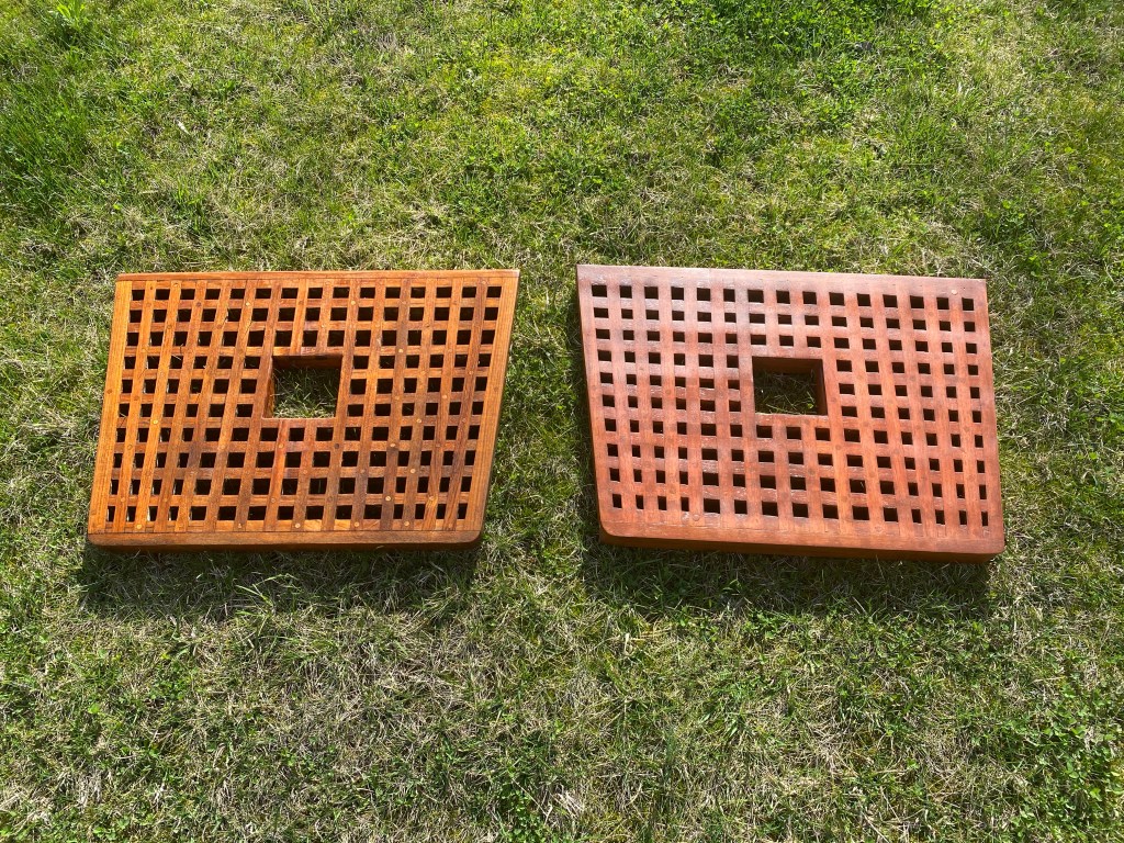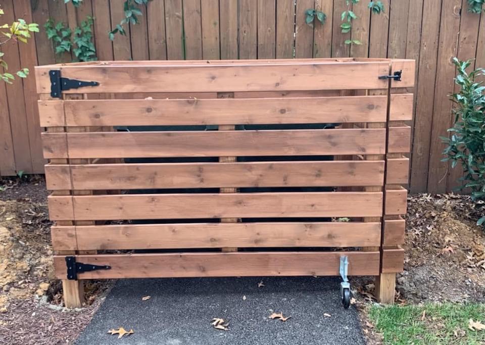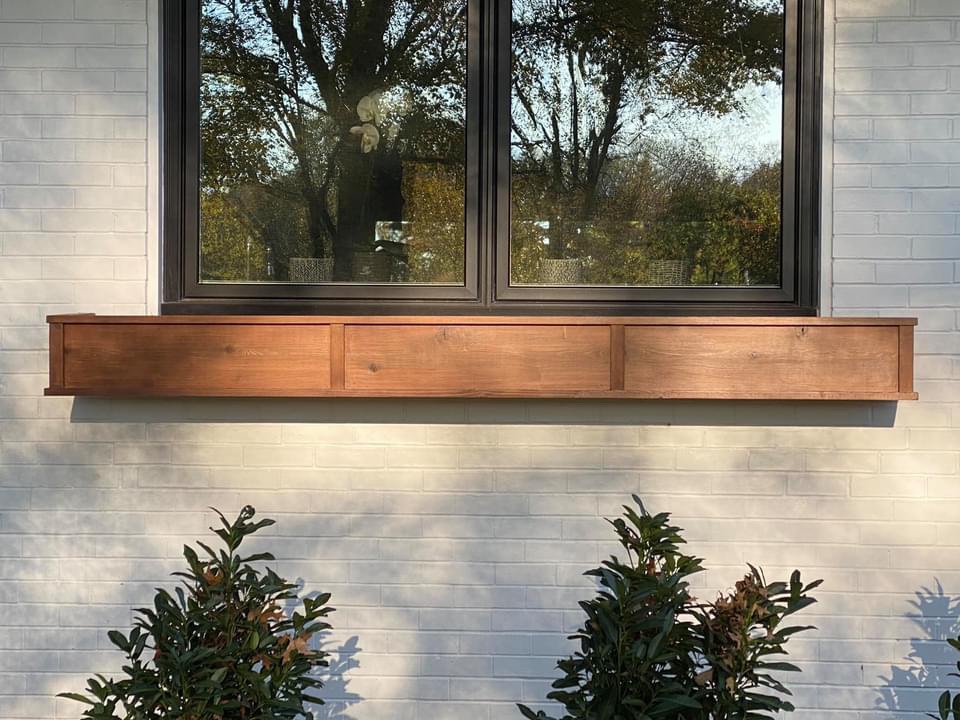 Just finished up part 2 of a project we have been working for a client (Remember the wood cornices?). We added some wood features to the front of her home and hid her garbage cans in the process. Every time we complete a job, my list for Lenny gets a little longer. 😉
