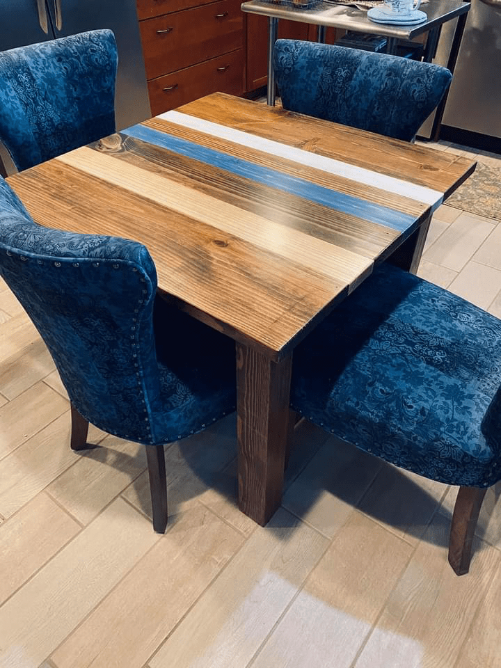 Just delivered a small kitchen table. We pulled in several colors from our customer’s kitchen with different stains and paints.