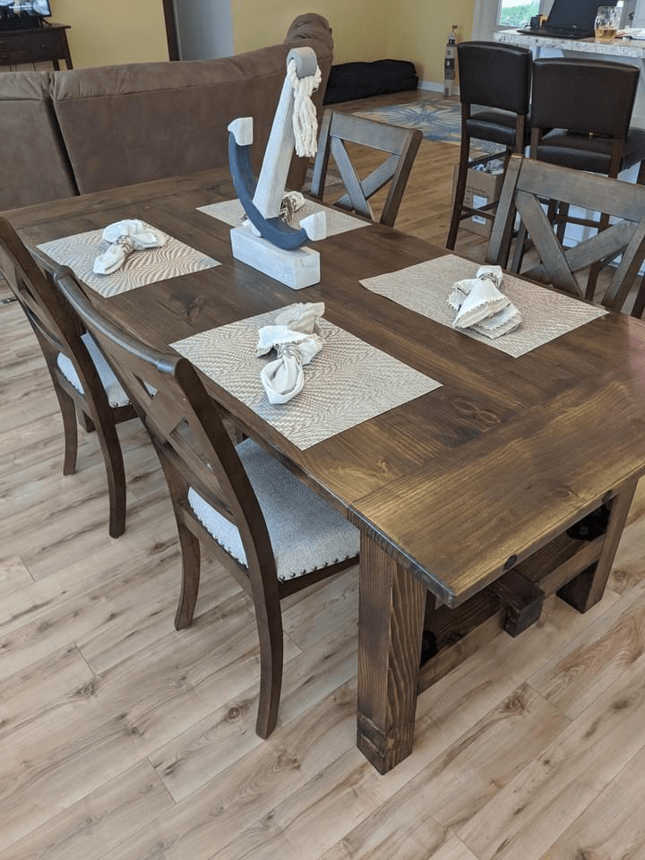 Our latest project was a table for Lenny’s sister’s lake house. We were able to match the color to the chairs she purchased separately. Looks super cute with her decor! We see a lot of wine and laughter around it for years to come!
